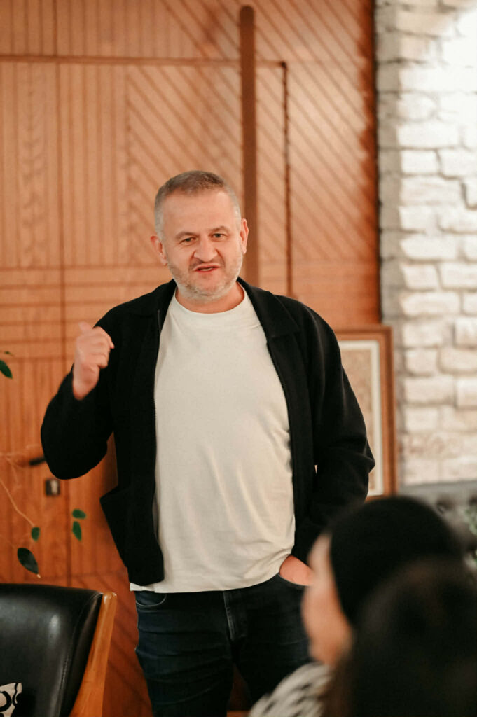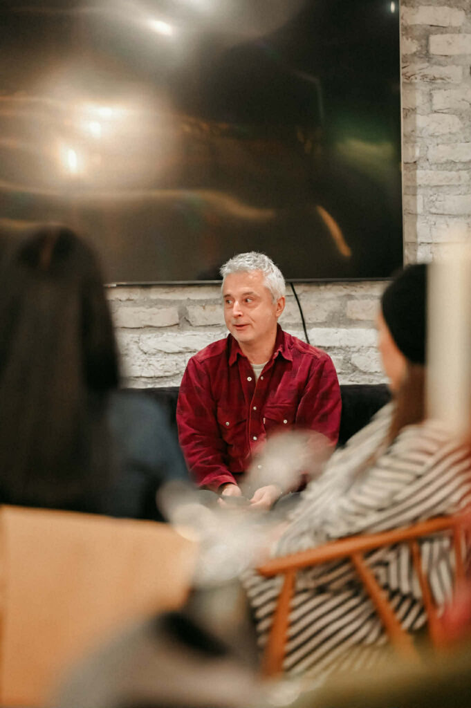 Пеце Талевски, продуцент и културен работник од „ОХО“ продукција, со долгогодишно искуство во создавање и курирање авторски и независни културни проекти, ја водеше дискусијата како внимателен читател и соговорник што знае да ја отвори падината кон читање на книги, но и бескрајна почит за македонските изданија.