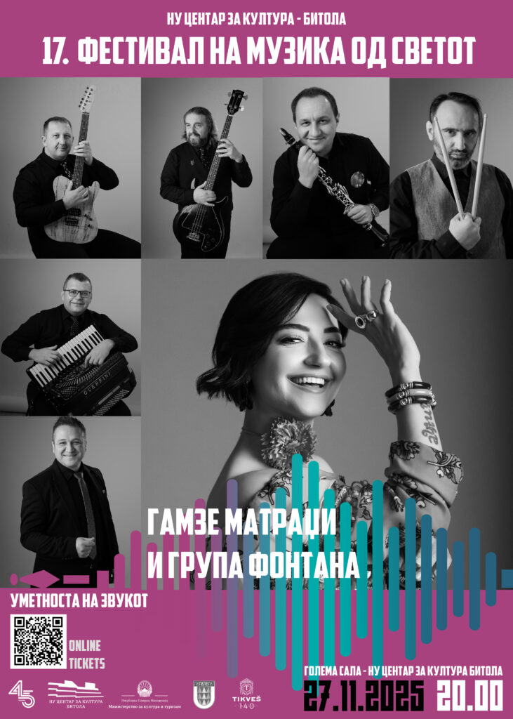 На 27 ноември, во 20:00 часот, Битола ќе биде центарот на балканската музичка енергија! Вечер што носи моќ, традиција и незаборавна атмосфера. Уникатен настап на Фонтана и Gamze Matraci, дел од Фестивалот на музика од светот 2025.