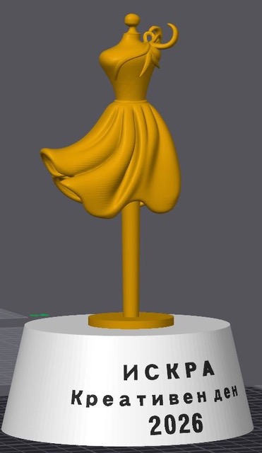 Статуетката е изработена со 3Д печатење од биоразградлив материјал, како дел од заложбата на Креативен Ден за одговорни и современи пристапи во создавањето.