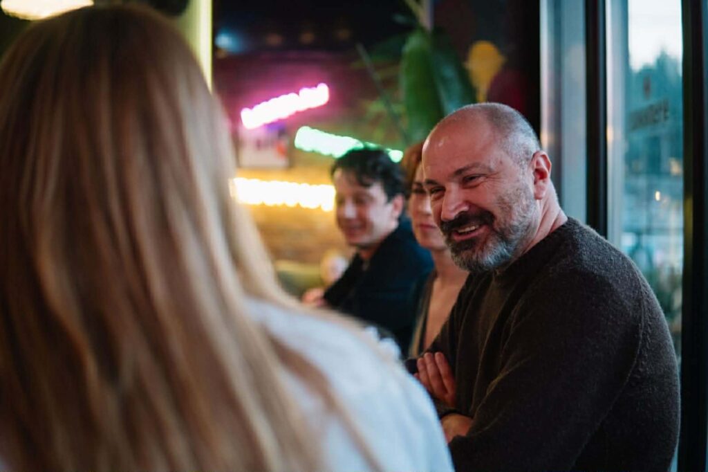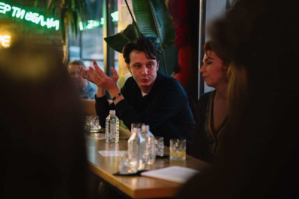 Настанот започна во 17:00 часот, во препознатлив after work амбиент – публика што доаѓа директно од работниот ден, но подготвена за разговор што оди подлабоко од секојдневието. Темата звучеше едноставно: љубов. Но вечерта покажа дека љубовта не е романтичен декор, туку материјал од кој се создава уметноста и личното искуство.